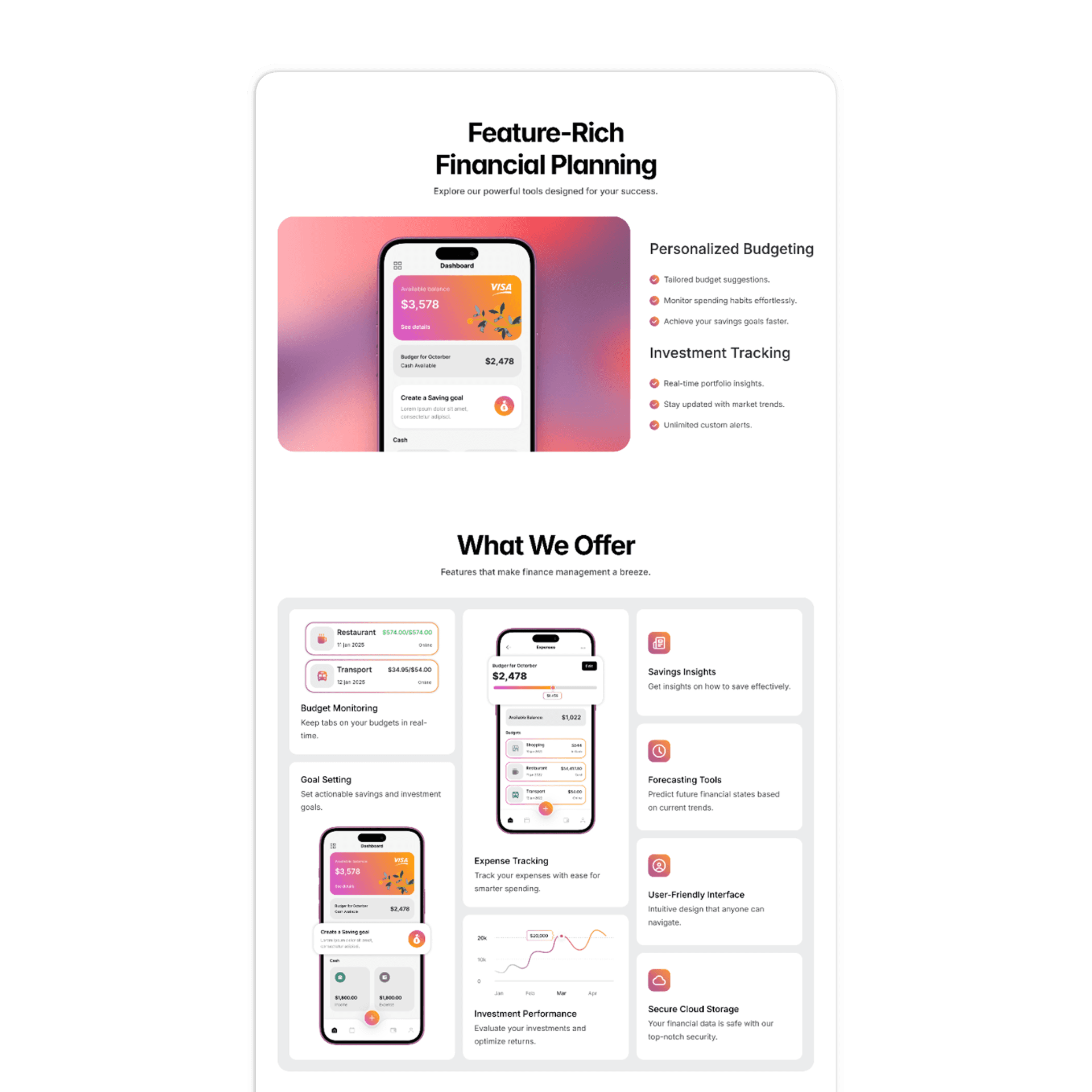 Financial planning app landing page.